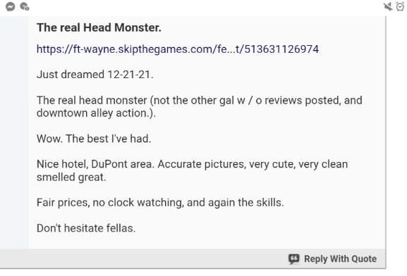 Heyhey! Miss me? I hope so, because I've missed you๐โค๏ธ Let's play catch-up๐ If we haven't met, I'm always looking to meet new friends! No Drama, drugs, diseases. Just me or it's free๐ Thick, love to have fun, and know exactly what I'm doing ๐ ๐ Long time friends/ occasional pass thru-ers lol. I've gotten A new number. See below ๐ ๐ญ Ask me about my ๐ญ it'll make you forget the rest, once you've had the best! ๐ ๐ I'm a Queen..Allow me to give you the royal treatment n treat you like the King you areโค๏ธ๐ ๐ข Hosting off Dupont/69/469. Behind Dupont hospital. Outcall now available. ๐ I won't waste your time, so don't waste mine please. I book up quick, please keep your appt or lmk if cancelling.? ๐ No show=BLOCKED. vulgar n inappropriate shit=BLOCKED๐ โ๐ซ๐ซโ I'M NOT SENDING ANYTHING MORE THAN 1 VERIFICATION PIC. NOTHING EXPLICIT! IF MY REVIEWS ARENT ENOUGH, THEN IM NOT THE GIRL FOR YOU. ๐ Trucker friendly! ๐ฅ๐ฅ I screen. Calls esp! Leave a message/text, I will call back. ๐๐คฉ๐ฅ๐ฅ HIGHLY REVIEWED, check USA for more reviews! ๐ Fetish Friendly, so cum.. Let's play the day away๐ ๐Call or text Jade @ 260-257-8553. My old number 260-760-2934 can be deleted. It's broken, so please don't text me at any number except the 8553 #. |